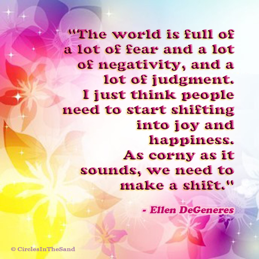 The world is full of a lot of fear and a lot of negativity, and a lot of judgment. I just think people need to start shifting into joy and happiness. As corny as it sounds, we need to make a shift.” – Ellen DeGeneres